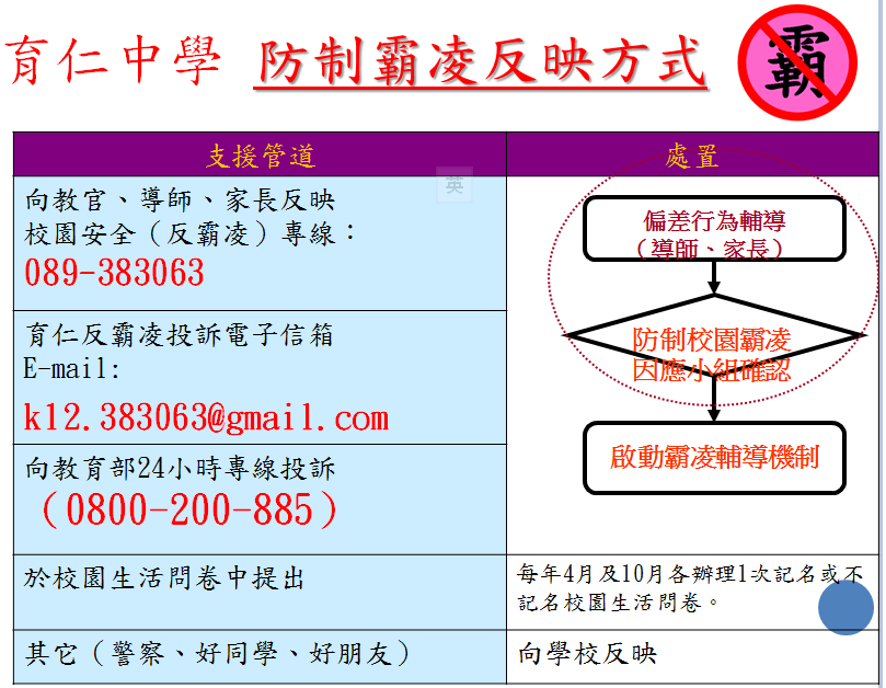 - 歡迎點閱教育部防制校園霸凌專區網頁。